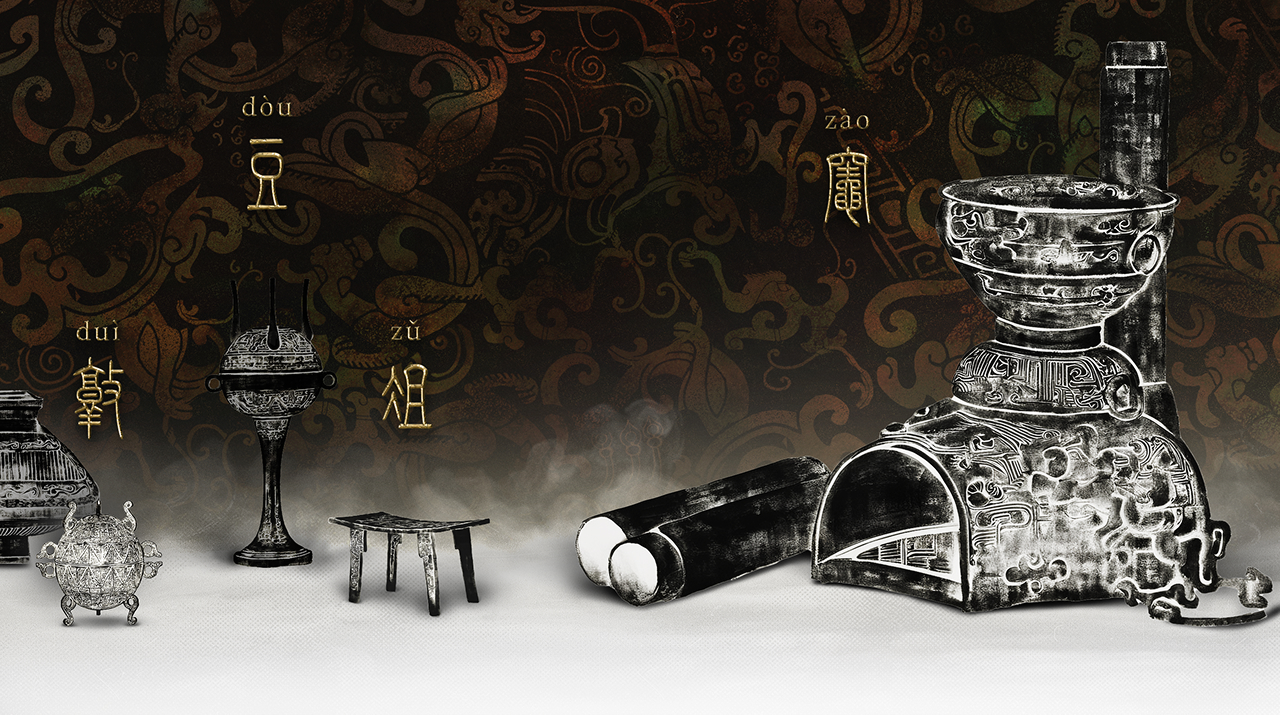 This section visualizes the hierarchical ding–gui system described in The Rites of Zhou, presenting vessel combinations for each social rank—from the Son of Heaven to lower aristocrats. Higher ranks were entitled to more ding and gui and more elaborate sacrificial food arrangements.