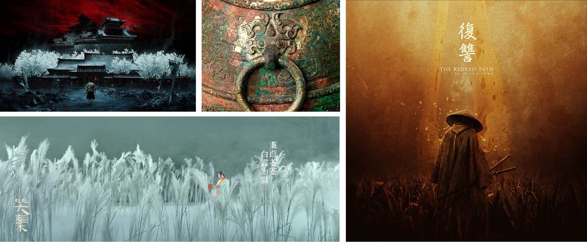 The project’s visual style centers on cinematic atmosphere and the weight of bronze artifacts, using a dark, grounded palette, high-contrast lighting, and poster-like compositions to evoke the solemnity of national treasures. Light yet purposeful animations—such as oracle-script evolution and gold-reveal effects—introduce approachable moments within an epic narrative tone. The result is a style that feels substantial without being heavy, solemn yet full of life.
