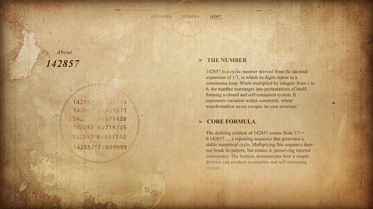 By clicking the “Decode” button, users are directed to dedicated pages explaining key terms such as SilMina, GolGera, and the 142857 Protocol. A glossary-style navigation at the top allows seamless switching between concepts, forming a clear and continuous learning path.